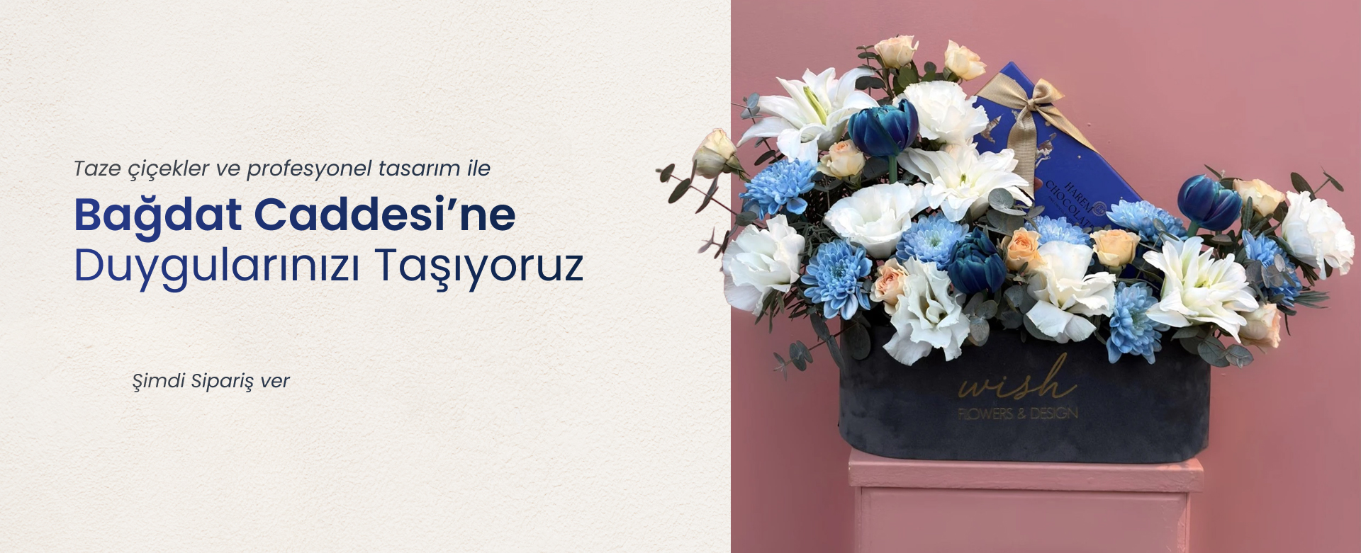 Bağdat Caddesinde ikamet eden yakınlarınıza çiçek göndererek onları mutlu etmenin en pratik yolu Wish Flowers’den geçer. Firmamızın sunduğu taze ve eşsiz güzellikte çiçek seçenekleriyle en özel günlere imza atmak tek tık uzağınızda. Web sitesinde yer alan binbir çeşit çiçek arasından en güzel modelleri seçeneklere, mis kokulu çiçeklerin yaydığı mutluluktan sevdiklerinizin de faydalanmasını sağlayabilirsiniz.