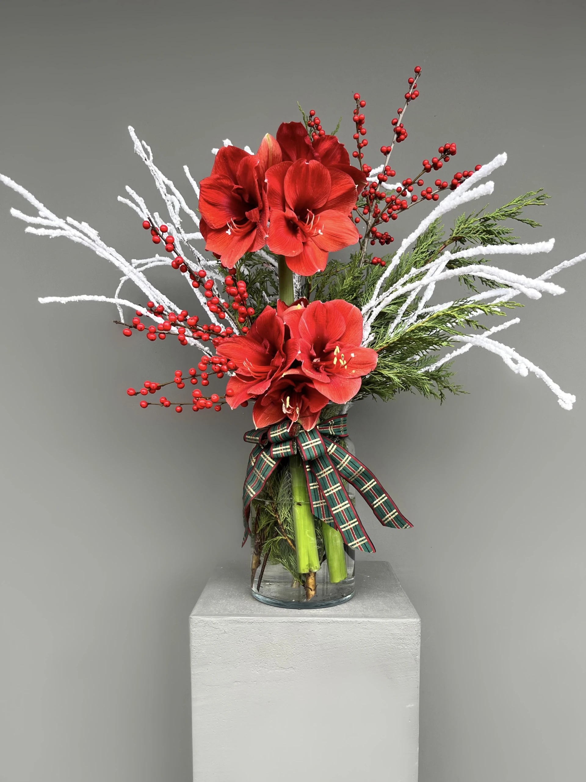 Cam Vazoda Amaryllis Ve Ilex Dalları