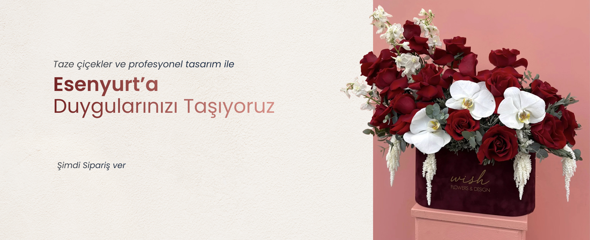 Her özel günün başrol unsuru olarak dikkat çeken mis kokulu taze çiçekler, Wish Flowers Design'in sunduğu Esenyurt çiçekçi hizmeti ile aynı gün içerisinde beğendiğiniz çiçekleri sevdiklerinize ulaştırır. Bu sayede en uzak mesafeler bile anlamsız hale gelir. Özellikle anneler günü, sevgililer günü, evlilik yıldönümü, doğum günü, yeni bebek kutlaması, yeni iş/terfi kutlaması gibi özel günlerde bu bitkilerin eşsiz zarafetinden faydalanabilirsiniz. Böyle özel günlere değer katmak için firmamızın geniş ürün seçeneklerine göz atmanız yeterlidir. Ayrıca nişan ve düğün çiçeklerine ihtiyacınız olduğunda Esenyurt çiçekçi imdadınıza yetişir.