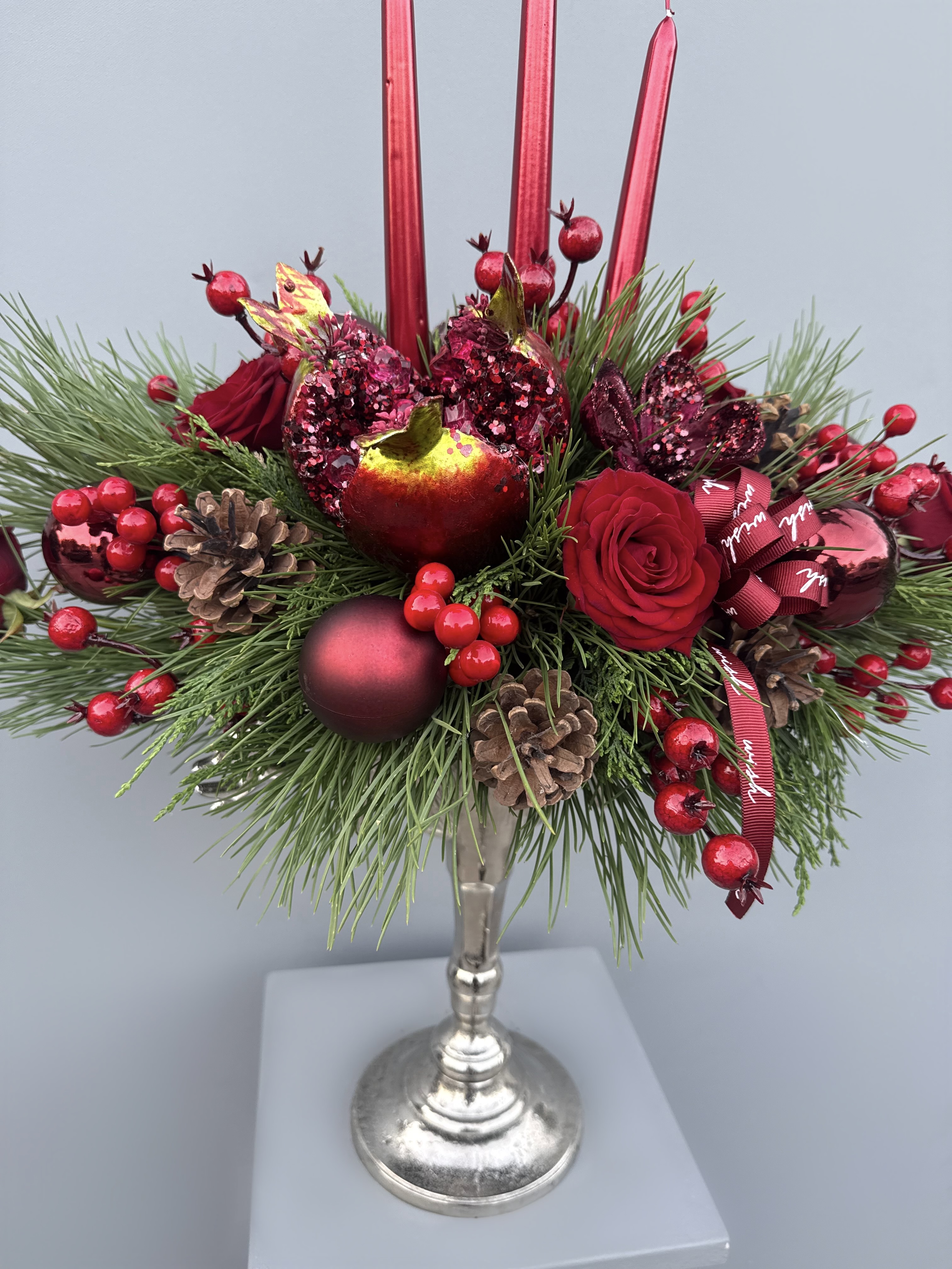 Geyikli Şamdan İle Lüks Yılbaşı Masa Aranjmanı