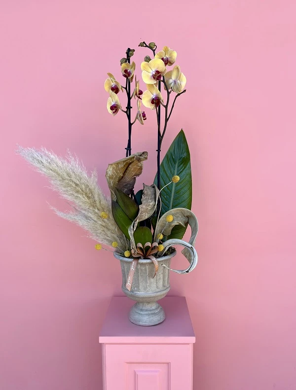 Özel Tür Mix Orkide seramik içerisinde plastik sulama saksısı ile birlikte sunulur. Sağlık ve uzun ömürlü bir Orkide için sulama esnasında seramik saksısından çıkartıp su verilmeli ve fazla suyu akıtılmalıdır.
