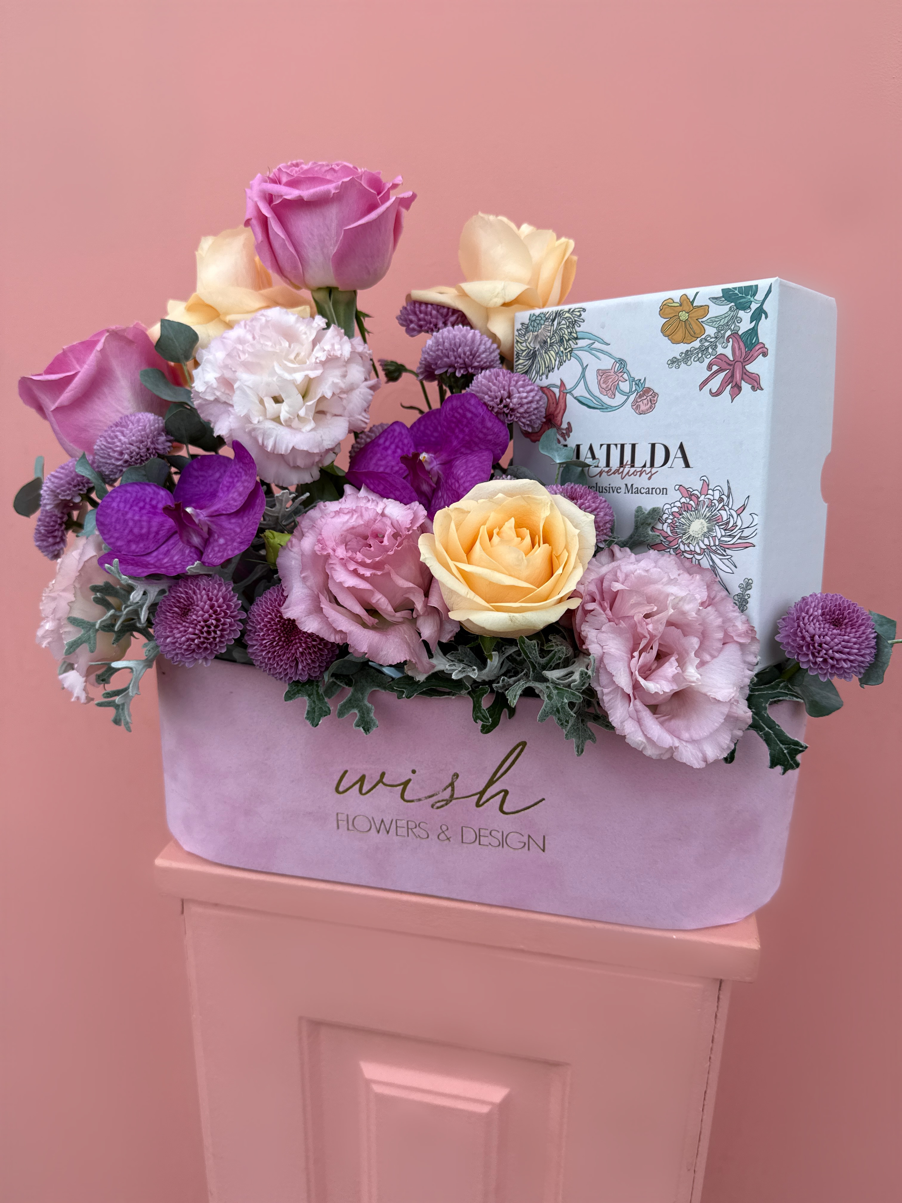 Pembe Kadife Kutuda Makaronlu Çiçek Bahçesi