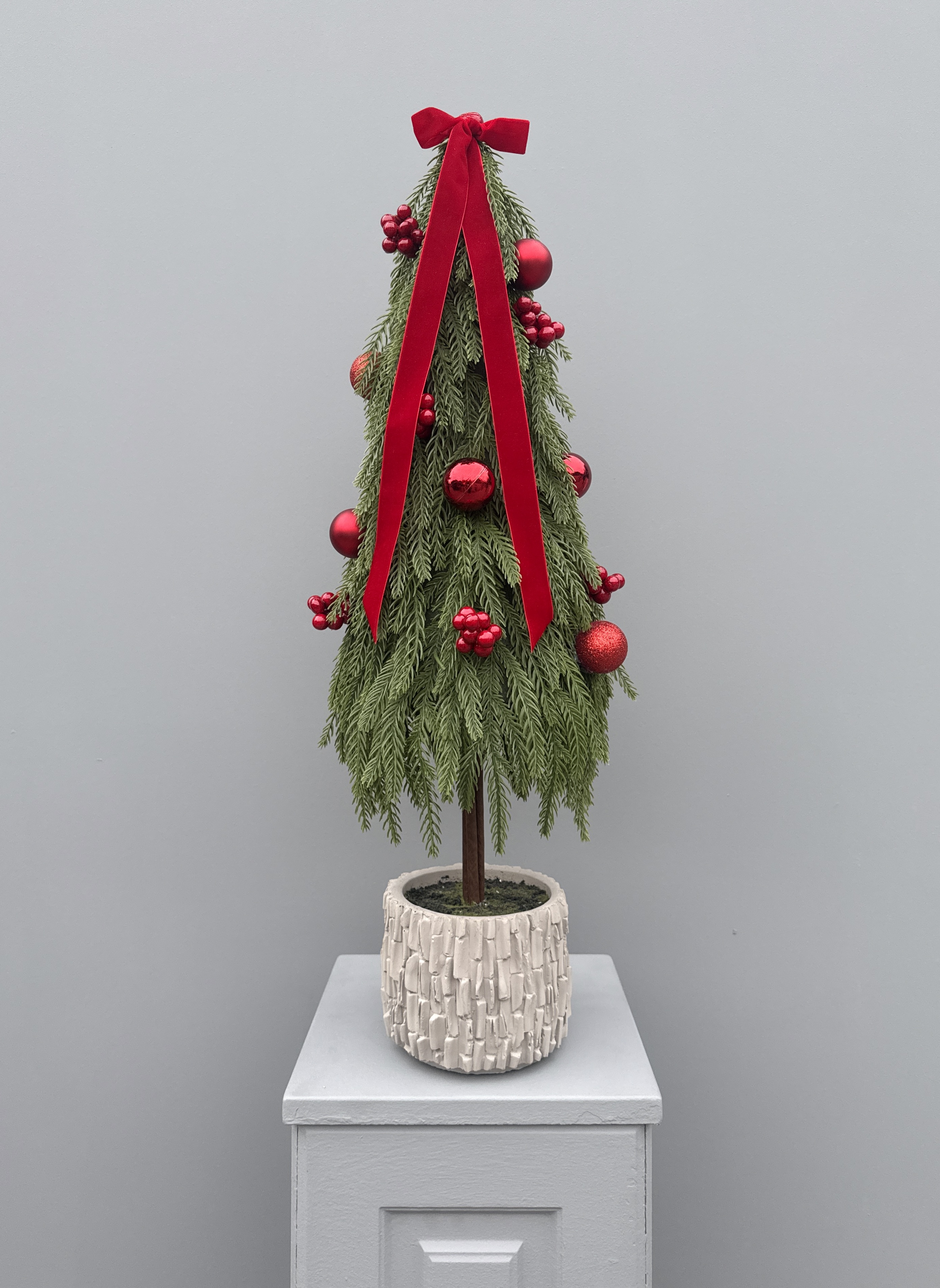 75 cm boyunda tamamen yapay olarak tasarlanmış bu özel çam ağacı, doğal görünümü birebir yansıtan kaliteli yapay dallarla hazırlanmıştır. Üzerinde yapay ilex dalları, parlak yılbaşı süs topları ve tepesinde kadife kurdele detayı bulunur. Bakım gerektirmeyen, her yıl tekrar tekrar kullanabileceğiniz dekoratif ve zarif bir yeni yıl ürünüdür.